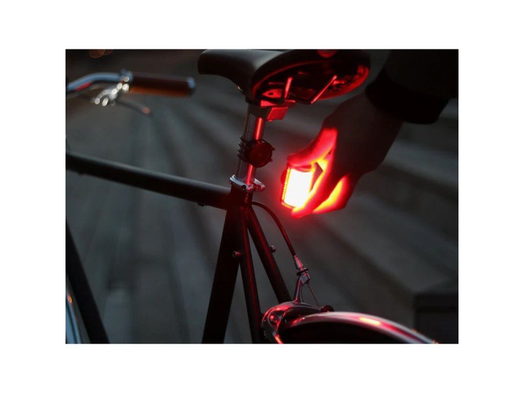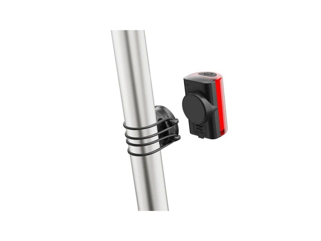 Magnetický držák se zadním světlem. Viditelnost 270° zaručí bezpečnost při pohybu ve městě a jakmile v pořádku dorazíte do cíle, jednoduše sundáte světlo z magnetického držáku a světlo vám tak nikdo neukradne. Snadná instalace magnetického držáku gumičkami na sedlovku. Výkon 40 lumenů, výdrž až 20 hodin, 6 světelných módů a dobíjení pomocí USB-C portu.