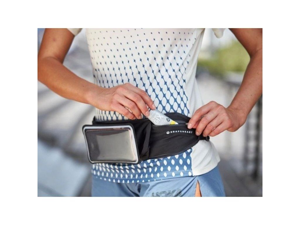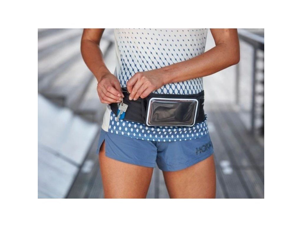 Moderní běžecký pás s pouzdrem na telefon, který se uchycuje na břicho, takže máte o svém telefonu neustálý přehled. Sada je dostupná ve 3 velikostech pouzdra podle velikosti telefonu (M, XL a XL+). Pouzdro na telefon je voděodolné a má vstup na sluchátka. Pás je vyroben z neoprenu v jedné nastavitelné velikosti pro všechny běžce (XXS - XXL), má 2 boční kapsy na drobnosti (včetně klipu na klíče) a do centrální kapsy lze vložit 2 Soft Flasky (měkké láhve na pití; lze samostatně dokoupit). Telefon lze snadno ovládat i v pouzdru, dotykový displej funguje i přes krycí fólii.