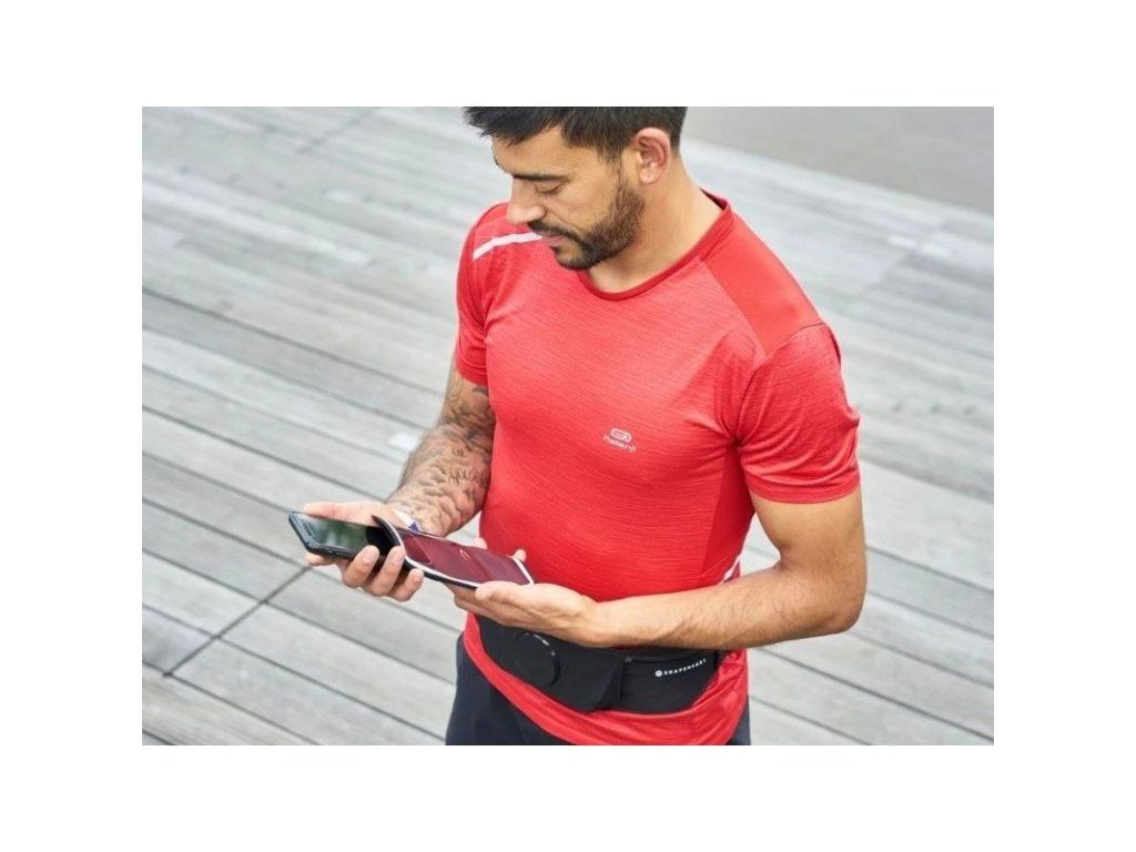Moderní běžecký pás s pouzdrem na telefon, který se uchycuje na břicho, takže máte o svém telefonu neustálý přehled. Sada je dostupná ve 3 velikostech pouzdra podle velikosti telefonu (M, XL a XL+). Pouzdro na telefon je voděodolné a má vstup na sluchátka. Pás je vyroben z neoprenu v jedné nastavitelné velikosti pro všechny běžce (XXS - XXL), má 2 boční kapsy na drobnosti (včetně klipu na klíče) a do centrální kapsy lze vložit 2 Soft Flasky (měkké láhve na pití; lze samostatně dokoupit). Telefon lze snadno ovládat i v pouzdru, dotykový displej funguje i přes krycí fólii.