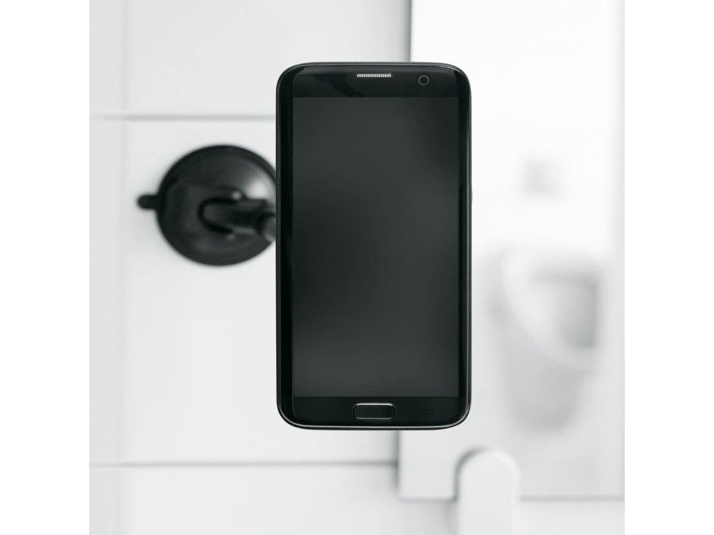 Flexibilní držák na mobilní telefon s ohybným ramenem Či už v autě, v kuchyni nebo v práci: s COMPIT FLEXX budete mít mobilní telefon vždy na očích. Tento všestranný systém má flexibilní rameno, které lze snadno ohnout do požadované polohy. Úhel mobilního telefonu lze nastavit a díky otočnému kulovému kloubu ho lze používat v horizontální i vertikální poloze. Můžete tak vidět svůj smartphone a mít volné ruce. Pevná přísavka pro bezpečné uchycení Silikonová přísavka s podtlakovým pákovým mechanismem zajišťuje bezpečné uchycení na všech hladkých površích, jako jsou dlaždice, čelní sklo nebo sklo. Povrch doporučujeme předem vyčistit. Díky osvědčenému bajonetovému držáku COMPIT lze smartphony k držáku připojit jediným otočením a poté je opět odpojit. To si vyžaduje kryt na mobilní telefon COMPIT. - Pro všechny hladké povrchy - Univerzální flexibilní rameno - Přísavka s pákovým mechanismem - Otočný kulový kloub - Bajonetový uzávěr