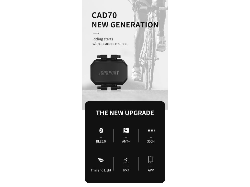 Snímač kadence iGPSport CAD70 je bezdrátové zařízení určené pro cyklisty, kteří chtějí sledovat svou kadenci šlapání v reálném čase.