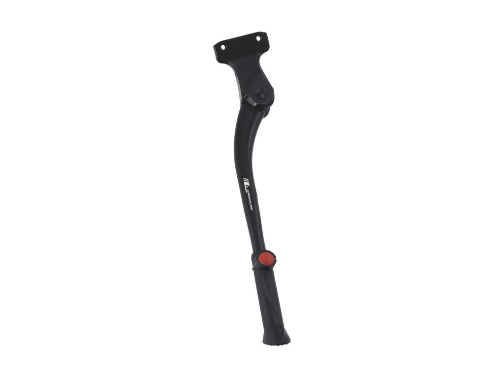 Pevný stojan na zadnú vidlicu s montážou na návarky s rozpätím dier 40 mm. Vhodný pre bicykle s 24-28" kolesami, ktoré sú ťažšie, ako napríklad elektrobicykle. Patentované jednoduché nastavenie dĺžky stojana bez potreby náradia.