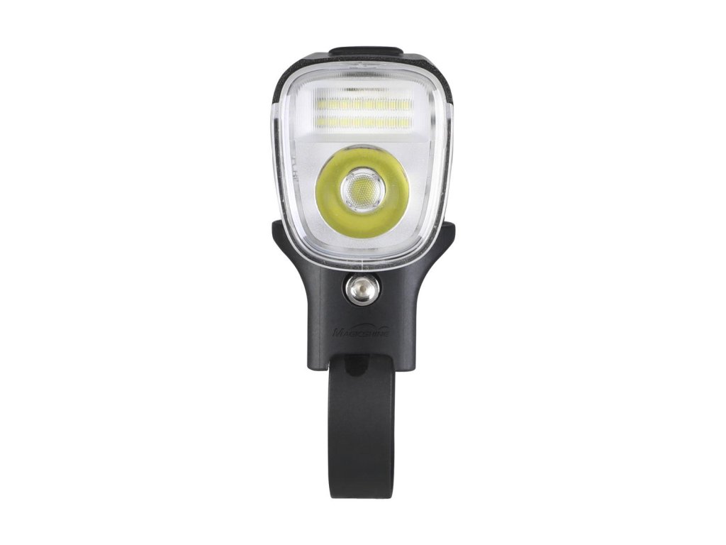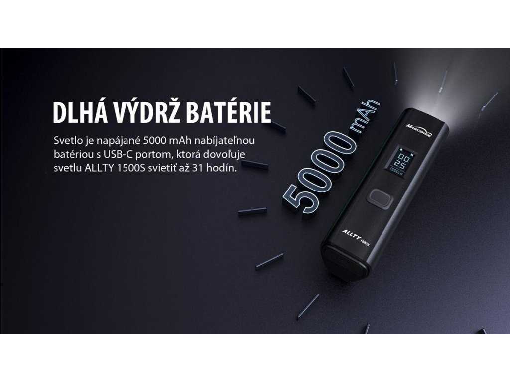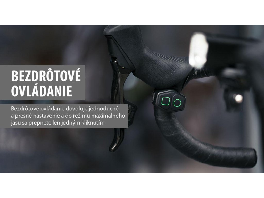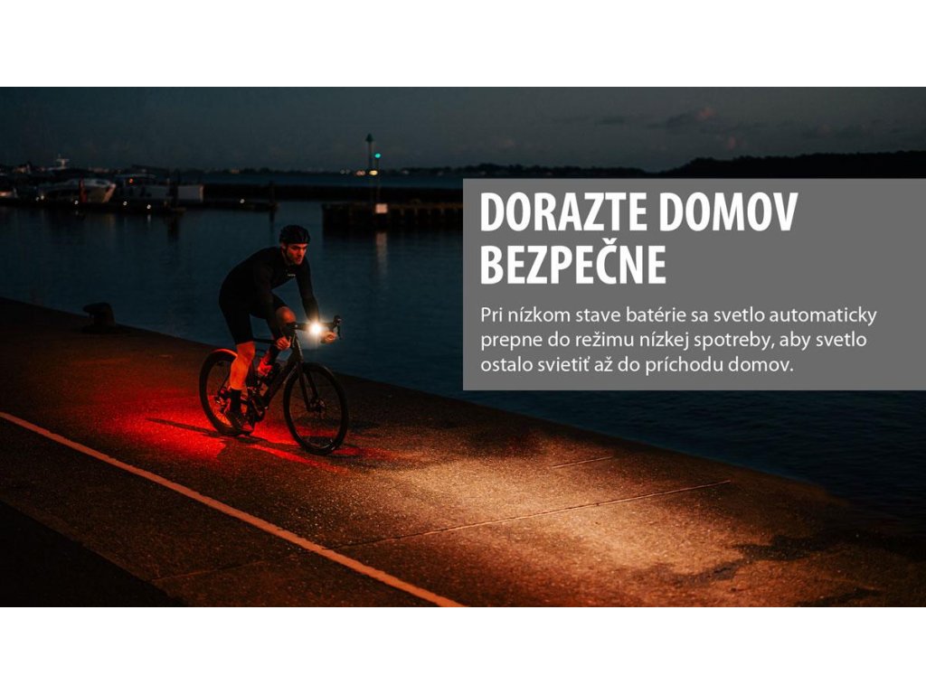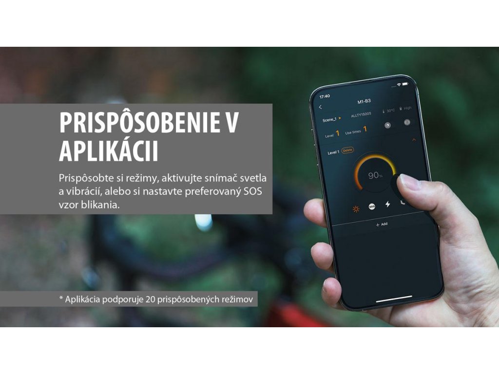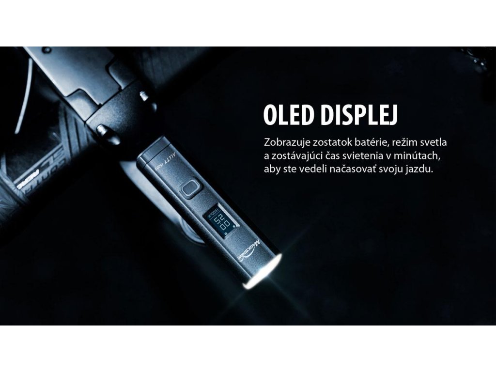 Predné svetlo ALLTY 1500S je špeciálne navrhnuté pre každodenné použitie ako pre horskú, tak aj cestnú cyklistiku, s možnosťou upevnenia na riadidlá alebo prilbu. Svetlo v klasickom a elegantnom dizajne je vybavené 2 funkčnými jednotkami, hlavným svetlom, využívajúcim vysokovýkonnú LED s maximálnym výkonom 1500 lúmenov a neustále zapnutým denným svetlom pre zaistenie maximálnej bezpečnosti ako cez deň, tak aj v noci. Odnímateľná 5000mAh batéria, dobíjateľná cez USB-C port zaručuje rýchle nabíjanie a podporuje prevádzkovú dobu až 31 hodín. OLED displej na tele svietidla zobrazuje okrem zvoleného režimu svietenia aj aktuálny stav batérie a čas do úplného vybitia. Keď sa batéria vybije, spustí sa režim nízkej spotreby, aby svetlo zostalo zapnuté a bezpečne vás priviedlo domov. Súčasťou balenia je bezdrôtové diaľkové ovládanie na zapnutie/vypnutie svetla, výber intenzity a zmenu režimu osvetlenia. ALLTY 1500S je kompatibilný aj s aplikáciou Magicshine, ktorá podporuje až 20 vlastných režimov a umožňuje zvoliť intenzitu osvetlenia od 1 % do 100 %. Aktiváciou senzora okolitého svetla z aplikácie bude svetlo schopné automaticky upravovať intenzitu počas dňa. Vďaka vodotesnosti IPX5 je ALLTY 1500S spoľahlivý aj v nepriaznivom počasí.