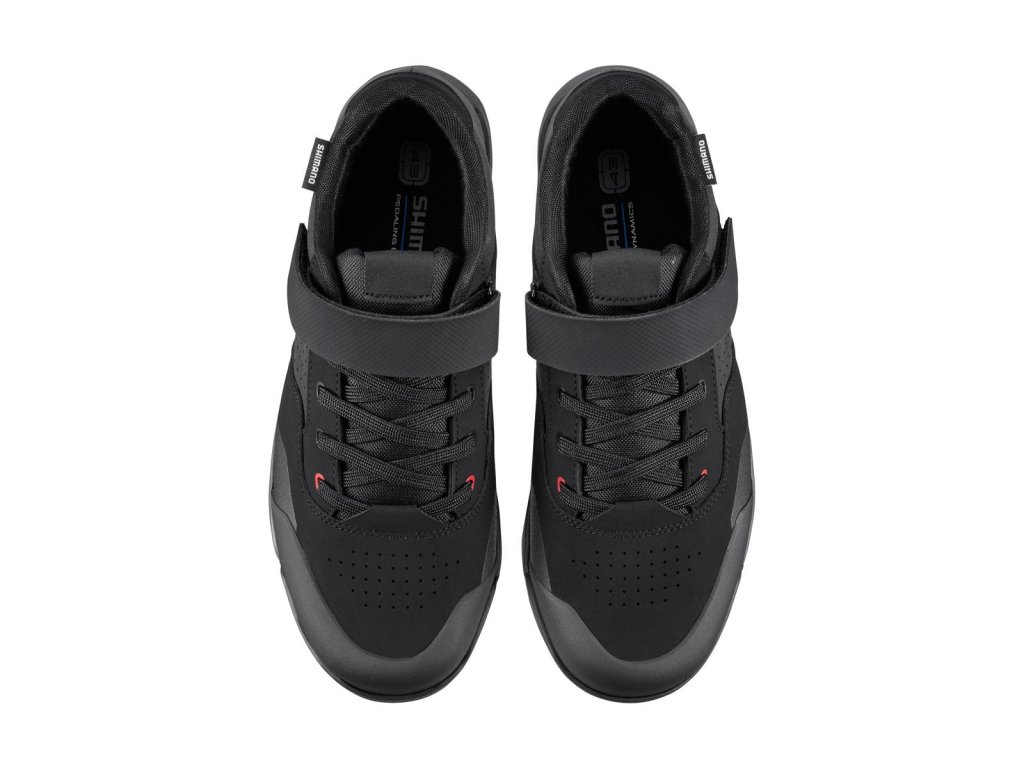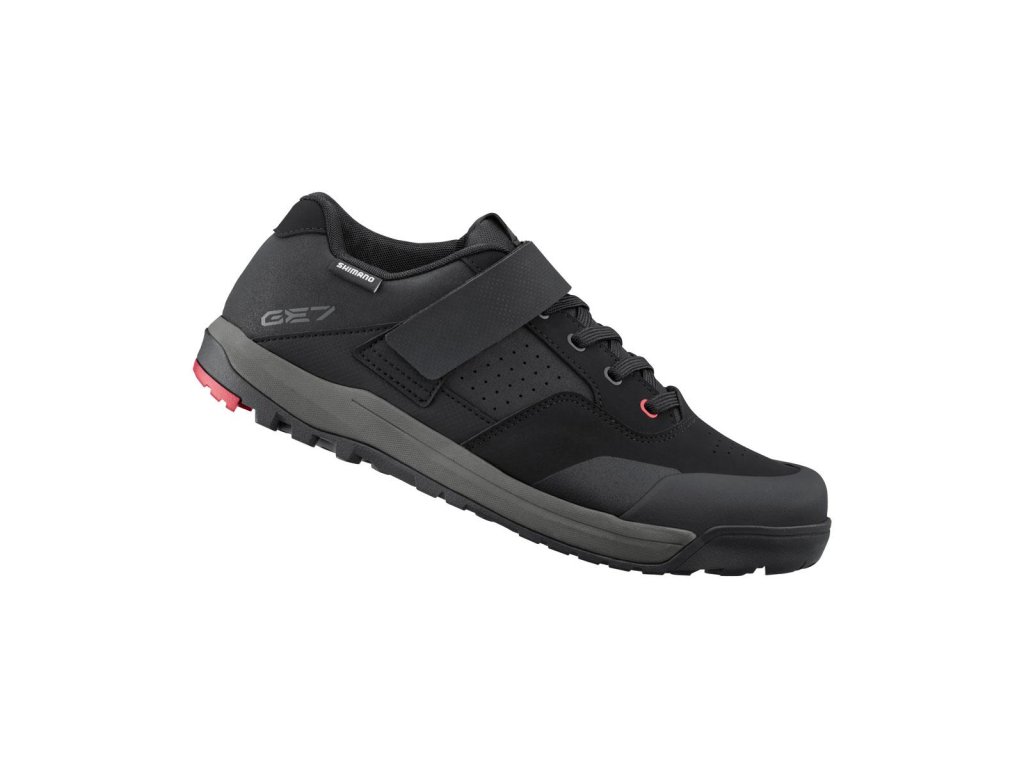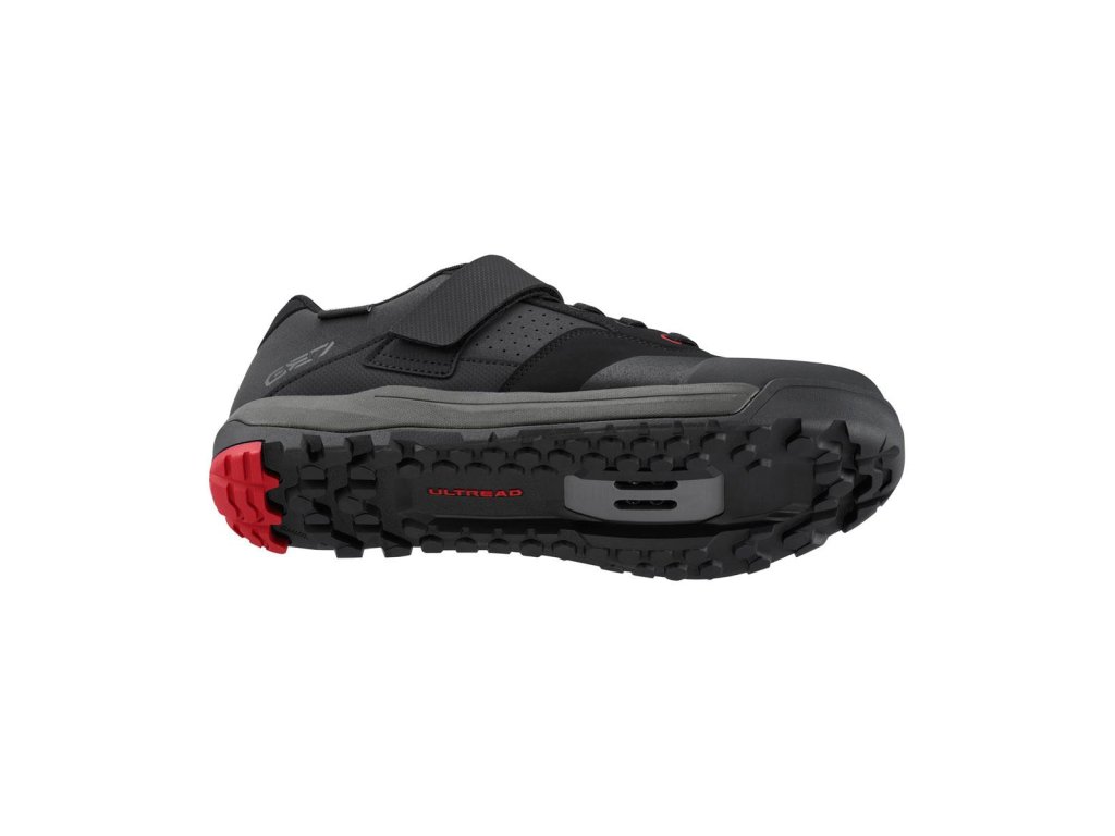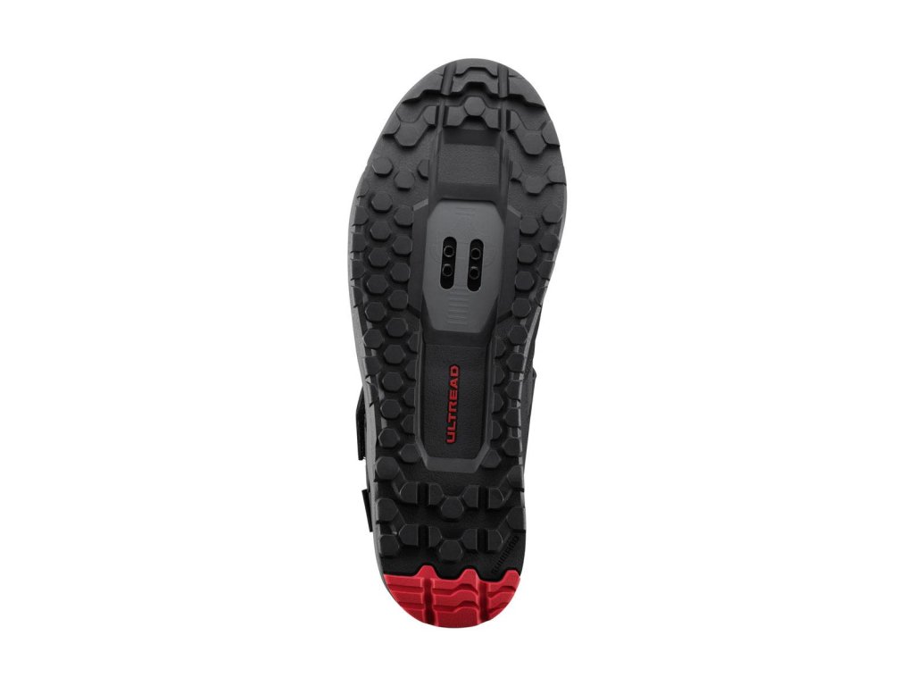 Gumená zmes SHIMANO ULTREAD GE optimalizovaná pre enduro a vzor dezénu podrážky zaisťujú spoľahlivé šliapanie a priľnavosť na bicykli aj mimo neho.