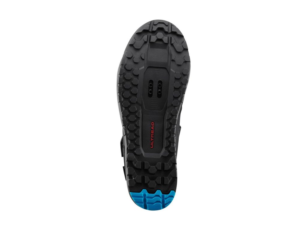 Gumená zmes SHIMANO ULTREAD GE optimalizovaná pre enduro a vzor dezénu podrážky zaisťujú spoľahlivé šliapanie a priľnavosť na bicykli aj mimo neho.