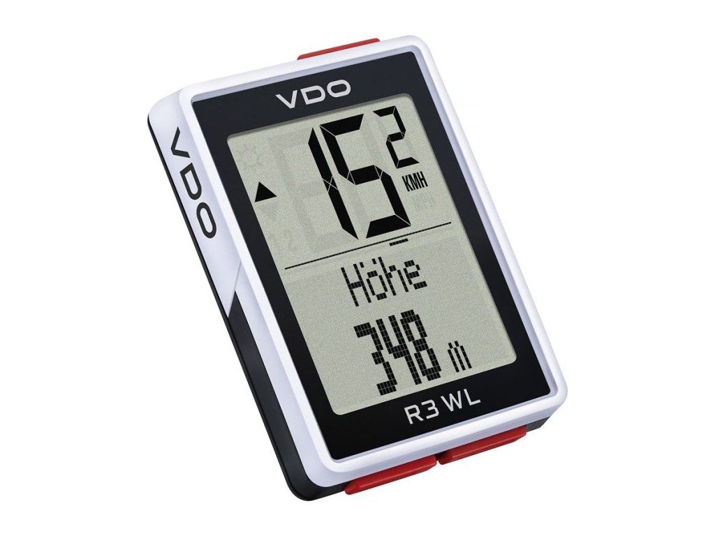 S bezdrátovým computerem VDO R3 WL máte při svých vyjížďkách do hor, při tréninku nebo jen při jízdě do kanceláře vždy přehled o všech důležitých údajích své jízdy. Vodotěsný computer VDO R3 WL zobrazuje okamžitou rychlost, denní a celkovou vzdálenost, celkový a aktuální čas jízdy, hodiny, průměrnou a maximální rychlost, porovnávání okamžité a průměrné rychlosti a teplotu. Navíc má computer integrované barometrické měření nadmořské výšky a lze jej používat na dvou kolech. Dále máte možnost sledovat své osobní statistiky za posledních 12 měsíců. Díky integrovanému podsvícení je displej dobře čitelný i ve tmě. Nastavení obvodu kola je další snadnou záležitostí, protože si můžete vybrat z integrované tabulky plášťů. Držák na řídítka pro vodotěsný computer lze rychle namontovat na kolo pomocí přiložených stahovacích pásků. Computer lze poté snadno vyjmout a uschovat, čímž jej ochráníte před možným odcizením. Bezdrátový přenos dat zajišťuje digitální vysílač, který je umístěn na vidlici kola. Baterie (CR2450) postačí k napájení počítače po dobu delší než dva roky. Spárováním computeru VDO R3WL s volitelně dostupným vysílačem kadence si máte možnost neustále hlídat svou kadenci.