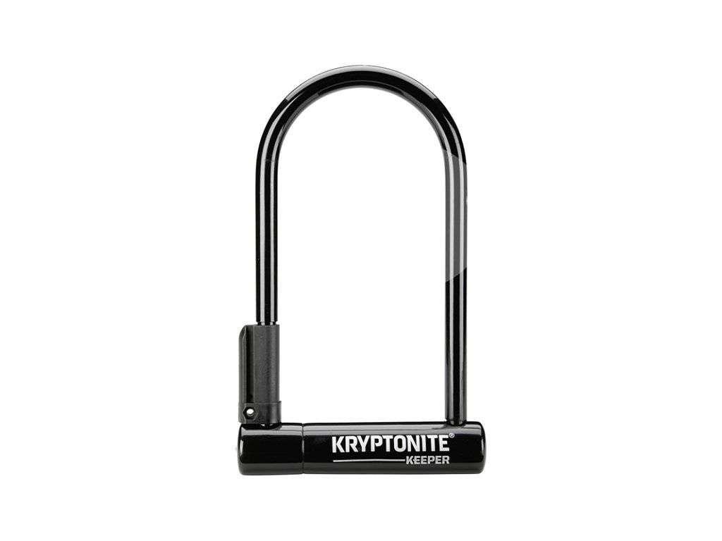 Odolný zámek Kryptonite Keeper 12 Standard s 12 mm ocelovou podkovou, mechanismem DEADBOLT, dvěma klíči a držákem na rám. Úroveň ochrany 5/10.