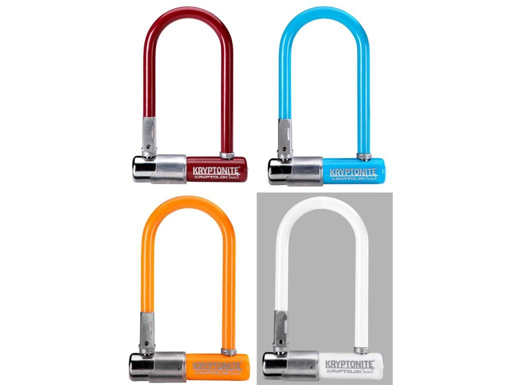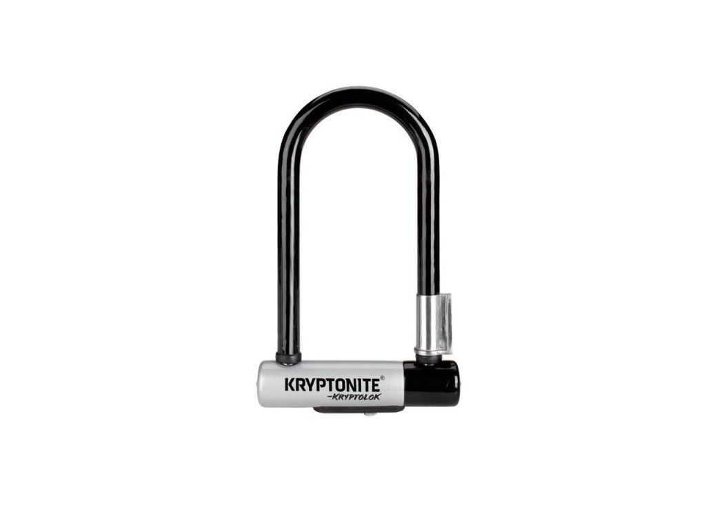 Odolný U-Lock zámek Kryptonite KryptoLok Mini-7 s 12,7 mm ocelovou podkovou, diskovým tělem a držákem na rám. Úroveň ochrany 6/10.