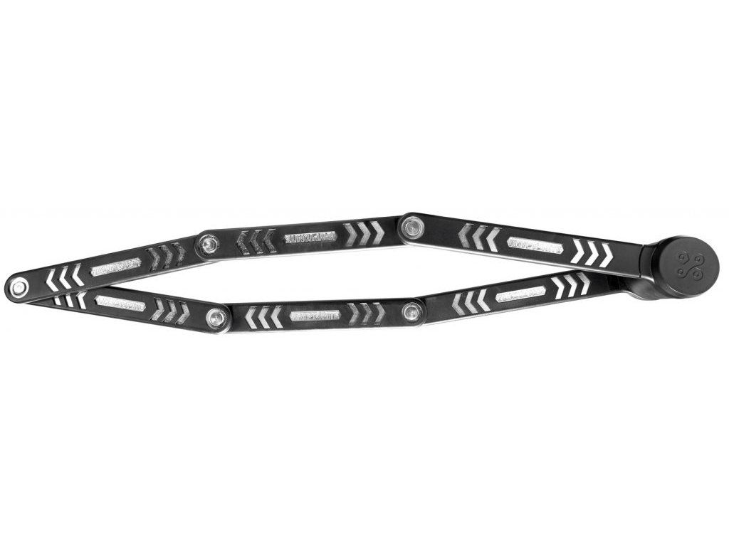 Odolný skládací zámek Kryptonite o délce 100 cm, 3 mm články z tvrzené oceli, dvěma klíči a držákem na rám. Úroveň ochrany 5/10.